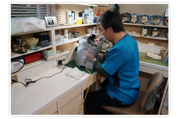 入れ歯や詰め物等を、できるだけ早く患者様に付けていただけるように、院内に歯科技工室を併設しています。