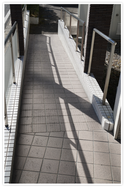 エントランスには、医院の建物に並行して手すり付きの緩やかなスロープを設けました。